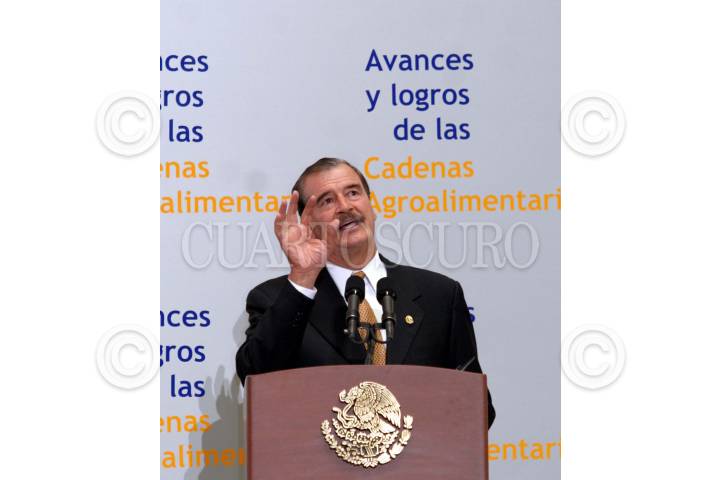 México, D.F., 27ENERO2005.- Vicente Fox Quesada, presidente de la República y Javier Usabiaga, secretario de la SAGARPA, durante la visita del primer mandatario a la Secretaría de Agricultura, Ganadería, Desarrollo Rural, Pesca y Alimentación. FOTO: Moisés Pablo/CUARTOSCURO.COM