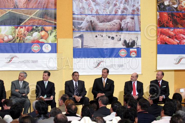 México, D.F., 27ENERO2005.- Vicente Fox Quesada, presidente de la República y Javier Usabiaga, secretario de la SAGARPA, durante la visita del primer mandatario a la Secretaría de Agricultura, Ganadería, Desarrollo Rural, Pesca y Alimentación. FOTO: Moisés Pablo/CUARTOSCURO.COM