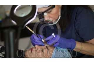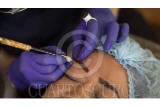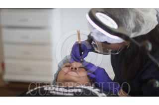 CIUDAD DE MÉXICO, 21ABRIL2019.- La señora Marina Infante perdió el 70 por ciento de sus cejas tras someterse a un tratamiento contra el cáncer de seno; perder vellosidad es muy común en este tipo de tratamientos y muchas mujeres lo padecen: "No tener cejas te quita la expresión de la cara, me sentía sin rostro", afirma Marina. La especialista cosmétrica Tessa Hernández ayudó a Marina a recuperar "su rostro" a través de un procedimiento de micropigmentación, es decir le pintó de manera permanente las cejas y de forma gratuita. Esta campaña la inició Tessa en la clínica BliS Studio, en dónde a través de redes sociales lanzó una campaña para regalar un procedimiento al mes a personas que perdieron vellosidad por el tratamiento contra el cáncer. FOTO: ISAAC ESQUIVEL /CUARTOSCURO.COM