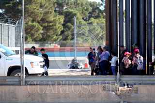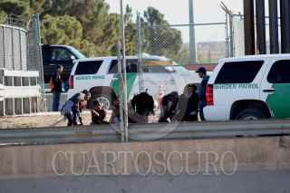 CIUDAD JUÁREZ, CHIHUAHUA, 21ABRIL2019.- Un numeroso grupo conformado por migrantes decidió entregarse esta mañana a la Patrulla Fronteriza. La entrega se realizó en el marcador 28 del Río Bravo, el cual se ubica a la altura de la Plaza de la Mexicanidad, en el lado mexicano. El grupo estaba conformado por decenas de familias: mujeres, niños y hombres; de momento se desconoce la cantidad exacta de personas que se entregaron. Cabe recordar que éste no es el primer grupo de migrantes que en su desesperación por cruzar a Estados Unidos se entrega a las autoridades. FOTO: NACHO RUIZ /CUARTOSCURO.COM
