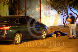 CULIACÁN, SINALOA, 21ABRIL2019.- Un joven a quien señalan de ser un presunto ladrón, fue asesinado a balazos por una de las calles del fraccionamiento Valle Dorado, al norte de la ciudad. La víctima, identificada como Francisco Javier, alias "El Cholo", de 35 años, el cual vestía pantalón de mezclilla negro, playera negra y tenis negros de la marca Adidas. También portaba una cachucha camuflada. Además, peritos localizaron entre las pertenencias del joven un cuchillo de cocina. El crimen se registró alrededor de las 21:35 horas, sobre la calle Ballena Gris, casi esquina con el bulevar Rolando Arjona, al norte de la ciudad. La víctima supuestamente salió de su casa y caminaba con rumbo al bulevar cuando fue perseguido por sujetos armados que viajaban en una camioneta. "El Cholo" corrió, pero los gatilleros empezaron a dispararle con pistolas calibre 9mm. Vecinos comentaron que desde hace mucho tiempo El Cholo traía en jaque a los vecinos del fraccionamiento Valle Dorado, Santa Anita y La Conquista, entre otros, por los constantes robos que cometía en las casas. Dijeron que apenas hace tres días fue perseguido a balazos durante la madrugada, cerca de su casa, aparentemente por intentar robar en una residencia de ese sector. Peritos localizaron 9 casquillos percutidos calibre 9mm en la escena del crimen. También al revisar el cuerpo de la víctima, le hallaron un cuchillo. FOTO: JUAN CARLOS CRUZ /CUARTOSCURO.COM