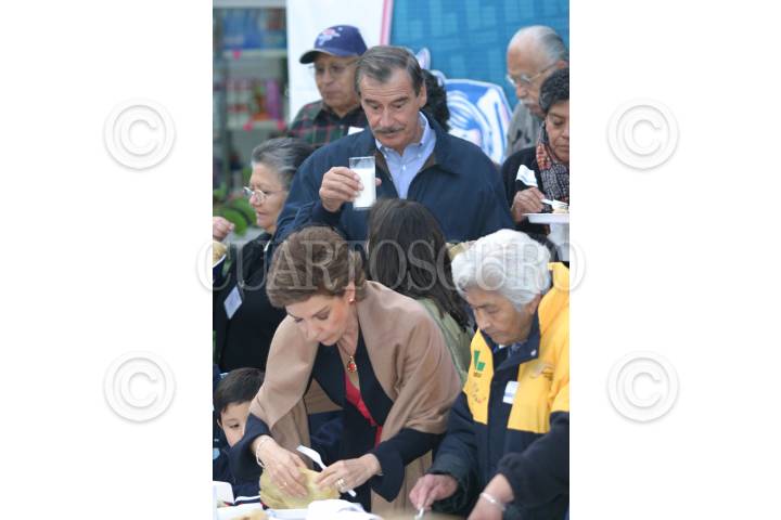 MEXICO, D.F. 02FEBRERO2005.- El presidente Vicente Fox y su esposa Marta Sahagún, durante la celebración del ¨Día de la Candelaria¨en las instalaciones de Liconsa. FOTO: Sandra Perdomo/CUARTOSCURO.COM