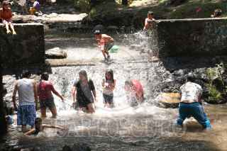CIUDAD DE MÉXICO, 21ABRIL2019.- Familia aprovecha las altas temperaturas y la semana Mayor para refrescarse jugando en el Río Magdalena. FOTO: ROGELIO MORALES /CUARTOSCURO.COM