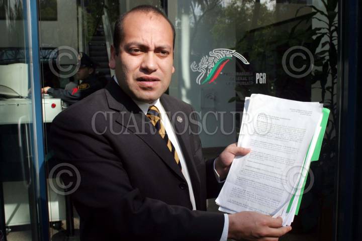 MEXICO, D.F., 02FEBRERO2005.- Julio Cesar Moreno Rivera, asambleísta del PRD, acudio a las instalaciones de la PGR para entregar el informe de la comparecencia de Marcelo Ebrard, ex-secretario de la SSP, ante la Asamblea Legislativa. FOTO: Moisés Pablo/CUARTOSCURO.COM