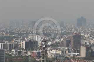 CIUDAD DE MÉXICO, 22ABRIL2019.- De acuerdo al sistema de monitoreo de la calidad del aire en el Valle de México, este lunes 22 de abril se dio a conocer que la calidad es de regular a buena, toda vez que se registra un valor máximo 99 puntos en la alcaldía Tláhuac. La imagen desde el piso 37 de la Torre Latinoamericana, donde la zona de Santa Fe y el sur de la capital con una intensa bruma gris. FOTO: MOISÉS PABLO /CUARTOSCURO.COM