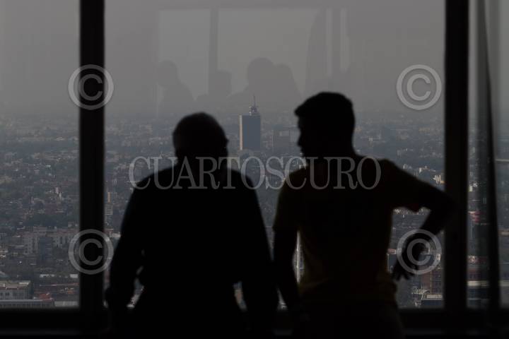 CIUDAD DE MÉXICO, 22ABRIL2019.- De acuerdo al sistema de monitoreo de la calidad del aire en el Valle de México, este lunes 22 de abril se dio a conocer que la calidad es de regular a buena, toda vez que se registra un valor máximo 99 puntos en la alcaldía Tláhuac. La imagen desde el piso 37 de la Torre Latinoamericana, donde la zona de Santa Fe y el sur de la capital con una intensa bruma gris. FOTO: MOISÉS PABLO /CUARTOSCURO.COM