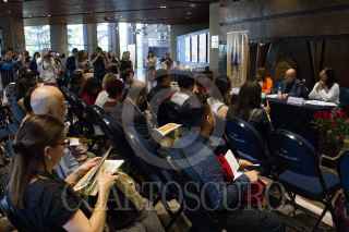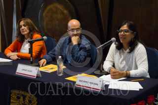 CIUDAD DE MÉXICO, 22ABRIL2019.- Socorro Venegas, Directora General de Publicaciones de la UNAM, encabezo la conferencia de prensa en la cual se presentó la Feria del Libro y la Rosa 2019, en la Sala Nezahualcóyotl de Ciudad Universitaria. Cabe destacar que para la edición de este año la ficción, crónica y periodismo serán los ejes principales de la feria. FOTO: ROGELIO MORALES /CUARTOSCURO.COM