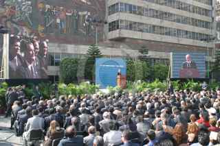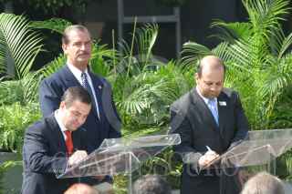 MEXICO, D.F. 02FEBRERO2005.- El presidente Vicente Fox presente en la firma del contrato para el fondo de cobertura social y de telecomunicaciones y Teléfonos de México. En la imagen Jorge Álvarez Hoth y Héctor Slim. FOTO: Sandra Perdomo/CUARTOSCURO.COM