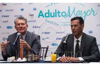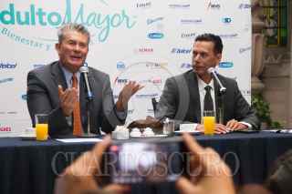 CIUDAD DE MÉXICO, 23ABRIL2019.- Javier Sirvent y Sergio Patgher, organizadores del Festival del Adulto del Mayor, en conferencia de prensa esta mañana, en un conocido hotel de la Zona Rosa. FOTO: VICTORIA VALTIERRA /CUARTOSCURO.COM