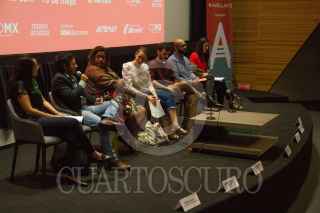 CIUDAD DE MÉXICO, 23ABRIL2019.- Roxana Alejo, Directora Operativa de Ambulante; Alejandro Melgoza Rocha, Periodista; María Candelaria Palma, Directora de Rojo; Paulina Suárez, Directora General de Ambulante; Sergio Blanco, Director de Cuando Cierro los Ojos; Sebastián Salamanca, Oficial del Programa de protección y Defensa de Articulo 19 y Meghan Monsouir, Directora de Programación de Ambulante, durante la conferencia inaugural del Festival de Cine Ambulante en la Ciudad y que para esta edición contará con el programa rutas de programación el cual recorrerá distintos puntos de la ciudad como el Monumento a la Revolución y los Pinos. FOTO: ROGELIO MORALES /CUARTOSCURO.COM