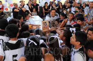 CUERNAVACA, MORELOS, 23ABRIL2019.- Padres del niño Axel, acompañados de sus familiares, amigos y compañeros del equipo de basquetbol Cobras Pinos le rinden un homenaje con un partido de este deporte en la cancha de usos múltiples de la colonia popular Satélite. El niño Axel Gael, de 10 años, ingresó el pasado domingo al hospital del IMSS de esta ciudad con un disparo de arma de fuego en el pecho, presuntamente una bala perdida resultado de una riña en su calle. El menor ingresó al hospital y murió horas después. FOTO: MARGARITO PÉREZ RETANA /CUARTOSCURO.COM