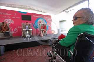GUADALAJARA, JALISCO, 23ABRIL2019.- Hoy la Feria Internacional del Libro de Guadalajara celebro el Día Mundial del Libro en un homenaje a Fernando del Paso con la obra “La Muerte se va a Granada”. Al final Carmen Villoro, Elmer Mendoza y Marisol Shulz sostuvieron una charla en torno al autor José Trigo y las obras “Palinuro” y “Noticias del Imperio”, a dicho evento evento asistieron la viuda del escritor Socorro Gordillo del Paso y su hijo Alejandro del Paso, dicho evento se llevo a cabo en la explanada de la Rectoría General de la Universidad de Guadalajara U.deG. FOTO: FERNANDO CARRANZA GARCIA / CUARTOSCURO.COM