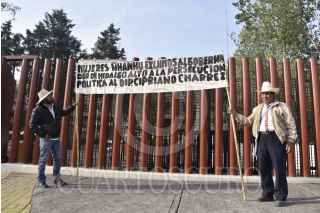 CIUDAD DE MÉXICO, 24ABRIL2019.- Un grupo de más de cien personas originarias de Ixmiquilpan Hidalgo, al exterior de Cámara de Diputados se manifestaron en defensa del diputado Cipriano Charrez, quien hoy enfrenta mediante Jurado de Procedencia se apruebe o no el dictamen de su desafuero. FOTO: MARIO JASSO /CUARTOSCURO.COM