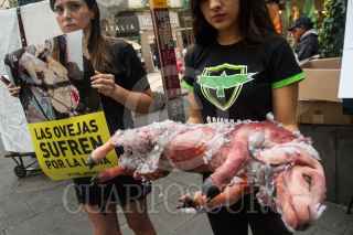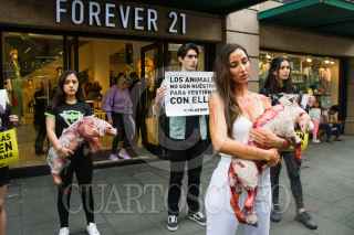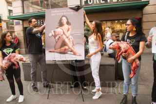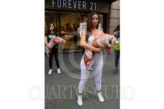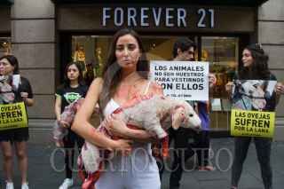 CIUDAD DE MÉXICO, 24ABRIL2019.- La modelo Sofía Sisniega junto con activistas de Peta Latinoamérica, defensores del maltrato animal, protestaron frente a la tienda de ropa y accesorios Forever 21, que se encuentra en la calle de Gante casi esquina Madero en el Centro Histórico de la Capital Mexicana. FOTO: VICTORIA VALTIERRA /CUARTOSCURO.COM