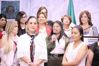 CIUDAD DE MÉXICO, 24ABRIL2019.- Marcelina Bautista Bautista, representante del Centro de Apoyo y Capacitación para Empleadas del Hogar (CACEH), acompañada por las diputadas Lorena Villavicencio Ayala y Wendy Briceño Zuloaga, Presidenta de la Comisión de Igualdad de Género de la Cámara de Diputados, ofrecieron una conferencia de prensa sobre el dictamen que aprobó el Senado, en el que se establece seguridad social a las personas trabajadoras del hogar. FOTO: CUARTOSCURO.COM