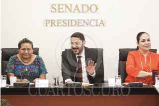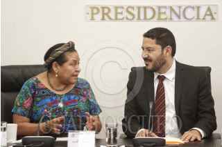 CIUDAD DE MÉXICO, 25ABRIL2019.- Rigoberta Menchú, premio Nobel de la Paz, asistió al Senado de la República, en donde fue recibida por integrantes de la Mesa Directiva, encabezada por el senador Martí Batres. FOTO: ISAAC ESQUIVEL /CUARTOSCURO.COM