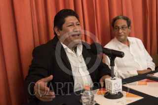 CIUDAD DE MÉXICO, 25ABRIL2019.- Daniel Rosas, periodista de El Mañana de Nuevo Laredo, y Sergio Aguayo, periodista, ofrecieron una conferencia de prensa para hablar de la denuncia que presentará Propuesta Cívica ante la Comisión Anticorrupción del PAN contra Óscar Enrique Rivas Cuéllar y Daniel Tijerina funcionarios panistas de Nuevo Laredo, Tamaulipas, quienes han demandado por supuesto daño moral a periodistas del mencionado medio de comunicación, ellos esperan que con esta acción las instancias del partido blanquiazul revisen el comportamiento de sus afiliados frente a actos que limitan la libertad de expresión. Aguayo espera que esto siente un precedente al ser el primer caso en el que se recurre a un órgano partidista para la atención de agresiones en contra de la libertad de prensa. FOTO: MOISÉS PABLO /CUARTOSCURO.COM