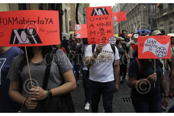 CIUDAD DE MÉXICO, 25ABRIL2019.- Estudiantes, maestros y académicos de los planteles Cuajimalpa, Iztapalapa, Azcapotzalco, Xochimilco y Lerma de la Universidad Autónoma de México (UAM) marcharon del Palacio de Bellas Artes al Zócalo capitalino exigiendo que la huelga terminé debido al paro de 83 días que inicio el Sindicato Independiente de Trabajadores de la Universidad Autónoma de México (SITUAM). En la imagen, alumnos votaron en la consulta para decidir sobre la continuidad del conflicto laboral. FOTO: GRACIELA LÓPEZ /CUARTOSCURO.COM