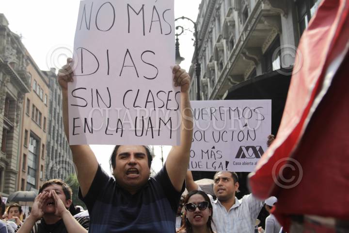 CIUDAD DE MÉXICO, 25ABRIL2019.- Estudiantes, maestros y académicos de los planteles Cuajimalpa, Iztapalapa, Azcapotzalco, Xochimilco y Lerma de la Universidad Autónoma de México (UAM) marcharon del Palacio de Bellas Artes al Zócalo capitalino exigiendo que la huelga terminé debido al paro de 83 días que inicio el Sindicato Independiente de Trabajadores de la Universidad Autónoma de México (SITUAM). En la imagen, alumnos votaron en la consulta para decidir sobre la continuidad del conflicto laboral. FOTO: GRACIELA LÓPEZ /CUARTOSCURO.COM