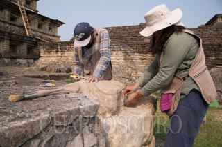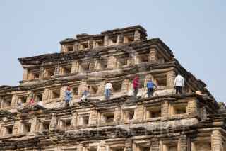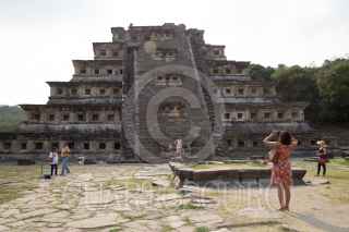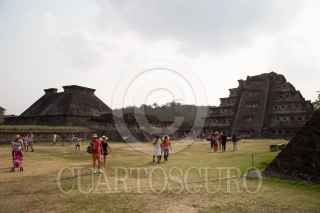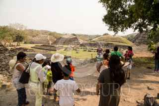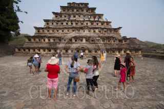 TAJIN, VERACRUZ. 26ABRIL2019.- Decenas de turistas nacionales visitan el sitio arqueológico de Tajín, en donde personal del INAH, realiza trabajos de conservación de la pintura mural y otros acabados arquitectónicos de la Zona arqueológica. FOTO: MARTIN ZETINA / CUARTOSCURO.COM