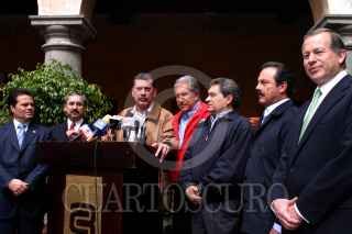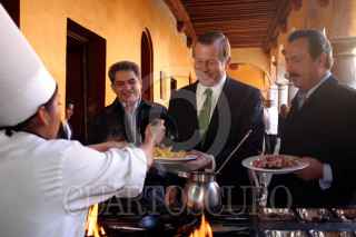 PUEBLA, PUEBLA, 04MARZO2005.- Tomas Yarrington, ex-gobernador de Tamaulipas, Manuel Angel Nuñez Soto, ex-gobernador de Hidalgo y Enrique Martínez, gobernador de Coauhila, sostuvieron un desayuno previo a la 19 Asamblea Nacional del PRI. FOTO: Moisés Pablo/CUARTOSCURO.COM