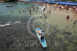 ACAPULCO, GUERRERO, 28ABRIL2019.- En el ultimo día de vacaciones de Semana Santa turistas aprovecharon para disfrutar de las ultimas horas de sol y playa en las tradicionales playas de Caleta y Caletilla del Puerto de Acapulco, en el ultimo día de vacaciones el puerto registro una ocupación hotelera de 71.2 por ciento. FOTO: CARLOS ALBERTO CARBAJAL /CUARTOSCURO.COM