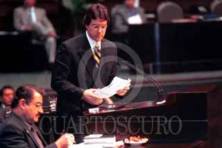 Carlos Jarque, arriba a la tribuna del Palacio Legislativo de San Lazaro para rendir su informe ante el pleno. FOTO: Pedro Mera/CUARTOSCURO.COM