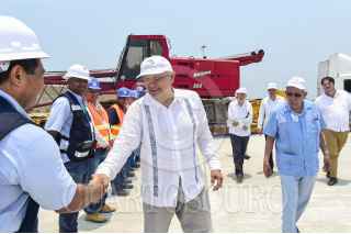 SALINA CRUZ, OAXACA, 28ABRIL2019.- Andrés Manuel López Obrador, Presidente de México, realizó un recorrido privado de supervisión de la construcción del muelle de usos múltiples en el Puerto de Salina Cruz, y observó avances del proyecto del nuevo puerto industrial. FOTO: PRESIDENCIA /CUARTOSCURO.COM