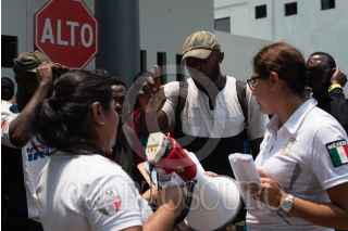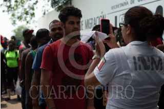 TAPACHULA, CHIAPAS, 29ABRIL2019.- Un nuevo grupo de al menos 400 migrantes provenientes del Congo, Camerún, costa de Marfil, India y Haití arribo esta mañana a la Estación Migratoria Siglo XXI en busca de iniciar sus tramites para poder continuar con su camino al norte del país. FOTO: ISABEL MATEOS /CUARTOSCURO.COM