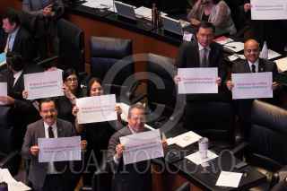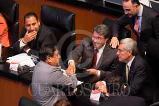 CIUDAD DE MÉXICO, 29ABRIL2019.- Carlos Aceves del Olmo, senador y líder de la Confederación de Trabajadores de México (CTM), durante la Sesión Ordinaria en la que se aprobó la Reforma laboral, en el Senado de la República. FOTO: GRACIELA LÓPEZ /CUARTOSCURO.COM