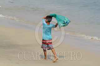 ACAPULCO, GUERRERO, 29ABRIL2019.- Un niño busca latas de aluminio en las playas para posteriormente vender y ganarse algo de dinero. FOTO: BERNANDINO HERNÁNDEZ /CUARTOSCURO.COM