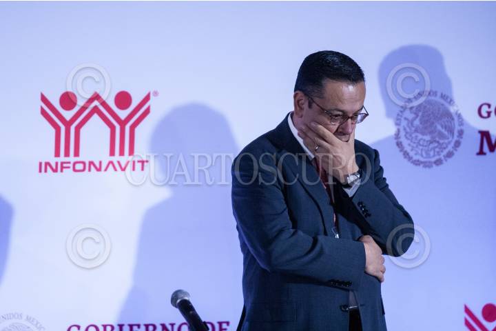 CIUDAD DE MÉXICO, 30ABRIL2019.- Carlos Aceves del Olmo, dirigente nacional de la Confederación de Trabajadores de México (CTM), y Alfonso Romo, jefe de la Oficina de la Presidencia de México, durante la 188 asamblea general del Instituto del Fondo Nacional de la Vivienda para los Trabajadores (Infonavit). FOTO: GALO CAÑAS /CUARTOSCURO.COM