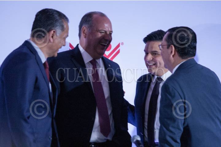 CIUDAD DE MÉXICO, 30ABRIL2019.- Carlos Aceves del Olmo, dirigente nacional de la Confederación de Trabajadores de México (CTM), y Alfonso Romo, jefe de la Oficina de la Presidencia de México, durante la 188 asamblea general del Instituto del Fondo Nacional de la Vivienda para los Trabajadores (Infonavit). FOTO: GALO CAÑAS /CUARTOSCURO.COM