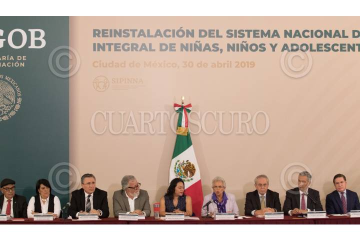CIUDAD DE MÉXICO, 30ABRIL2019.- María Luisa Albores García, Secretaria de Bienestar; Olga Sánchez Cordero, secretaria de Gobernación, y Jorge Alcocer Varela, secretario de Salud, conversan durante la ceremonia de instalación del Sistema de Protección Integral de los Derechos de las Niñas, Niños, y Adolescentes, realizado en las instalaciones de la Segob. En la imagen el gobernador de Hidalgo, Omar Fayad, se despide la Sánchez Cordero. FOTO: MOISÉS PABLO /CUARTOSCURO.COM
