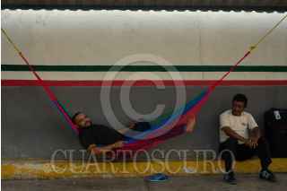 CIUDAD HIDALGO, CHIAPAS, 30ABRIL2019.- Migrantes centroamericanos esperan en el puente fronterizo para ser atendidos por las autoridades migratorias y empezar su pre registro para continuar su tramite de libre paso por territorio mexicano. Al menos 1300 personas se encuentran en él ahora albergue instalado dentro de las instalaciones de migración. Hace 17 días llegó Pedro Antonio a las oficinas de migración y obtuvo la ficha número 2533, aún sigue esperando su documentación. FOTO: ISABEL MATEOS /CUARTOSCURO.COM