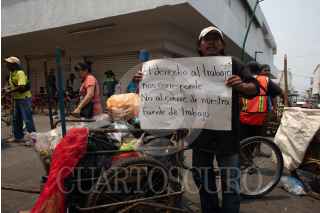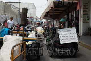 TAPACHULA, CHIAPAS, 30ABRIL2019.- Recolectores de basura del municipio realizaron una manifestación bloqueando una de las calles que conduce al centro histórico. Los trabajadores de limpia comentan que tienen miedo de perder sus empleos después de que el municipio anunciará que comprara nuevos camiones de basura y nadie se ha acercado a ellos para informarles cuál será su futuro. FOTO: ISABEL MATEOS /CUARTOSCURO.COM