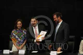 CIUDAD DE MÉXICO, 30ABRIL2019.- La senadora Josefina Vázquez Mota; Lorenzo Córdova Vianello, Consejero Presidente del INE, y Martí Batres, presidente de la mesa directiva del Senado de la República, durante la presentación de los resultados de la Consulta Infantil y Juvenil 2018 del Instituto Nacional Electoral (INE). FOTO: CUARTOSCURO.COM