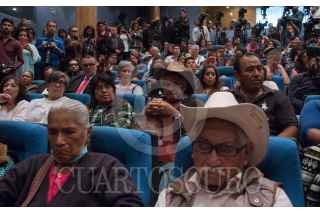 CIUDAD DE MÉXICO, 02MAYO2019.- Ernestina Godoy Ramos; la Presidenta de la Comisión de Derechos Humanos del Distrito Federal, Nashieli Ramírez Hernández; y la Secretaria de Gobierno de la Ciudad de México; Rosa Icela Rodríguez Velázquez, encabezaron la Disculpa Pública Derivada de la Recomendación 01/2018 “Falta de debida diligencia reforzada en la investigación del posible feminicidio de Lesvy Berlín Rivera Osorio, y negligencia en la atención a sus familiares”. Araceli Osorio Martínez madre de Lesvy Osorio y su padre Lesvy Rivera Calderon así como los abuelos, fueron los que presidieron la disculpa. FOTO: ANDREA MURCIA /CUARTOSCURO.COM