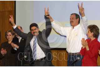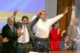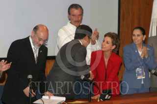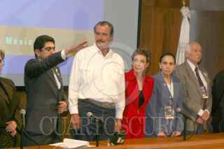MEXICO, D.F. 05MARZO2005.- Vicnte Fox Quesada, presidente de los Estados Unidos Mexicanos, felicitó a Manuel Espino por haber resultado electo como nuevo presidente nacional del Partido Acción Nacional. En la gráfica Luis Felipe Bravo Mena y Marta Sahagún de Fox. FOTO: Iván Stephens/CUARTOSCURO.COM