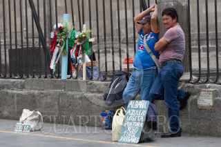 CIUDAD DE MÉXICO, 03MAYO2019.- Trabajadores esperan ser contratados frente a la Catedral durante el festejo del Día de la Santa Cruz, también conocido como el Día del Albañil. FOTO: ROGELIO MORALES /CUARTOSCURO.COM