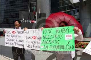 CIUDAD DE MÉXICO, 03MAYO2019.- Un grupo de personas se manifestaron frente a las oficinas del banco HCBC en la ciudad, los inconformes son cuentahabientes de la institución financiera y aseguran que fueron defraudados y sufrieron de robo de identidad. FOTO: ROGELIO MORALES /CUARTOSCURO.COM