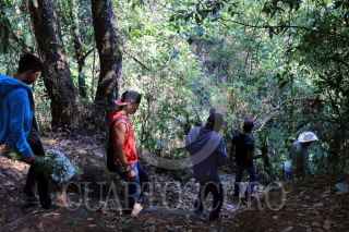 HUEYAPAN, MORELOS, 05MAYO2019.- El agua es el elemento vital, por ello se han desarrollado mitos en torno a ella. En Hueyapan, municipio indígena de reciente creación, pobladores se internan para llegar hasta el manantial Xantamalco, que aflora de las cavidades de una pared de piedra en la ribera del río Amatzinac, y que se alimenta del deshielo del Popocatépetl. Ahí llevan ofrendas de flores, dulces, galletas, velas, licor de agave y cigarros a “Los Aires”, duendes que viven en la profunda barranca. Desde los años 70, las personas han colocado líneas de manguera negra para conducir el líquido desde el manantial hasta sus casas, a través de la fuerza de gravedad. Con las ofrendas y rezos se busca que “Los Aires” garanticen el abasto durante el año. En la imagen una cactácea florece en una peña. FOTO: MARGARITO PÉREZ RETANA /CUARTOSCURO.COM