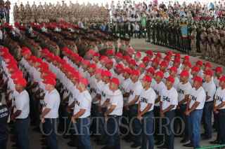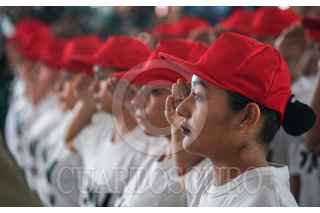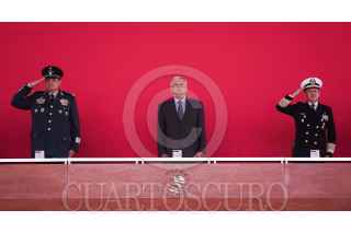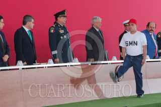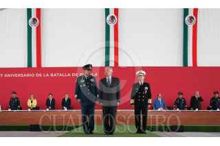 PIEDRAS NEGRAS, COAHUILA, 05MAYO2019.- Andrés Manuel López Obrador, Presidente de México, encabezó el 157 Aniversario de la Batalla de Puebla, en la cual participaron cientos de jóvenes del Servicio Nacional Militar. Lo acompañaron Luis Cesencio Sandoval González, secretario de la Defensa, y José Rafael Ojeda Durán, secretario de la Marina Armada de México. FOTO: PRESIDENCIA /CUARTOSCURO.COM