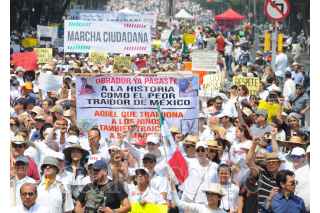 CIUDAD DE MÉXICO, 05MAYO2019.- Ciudadanos marcharon para mostrar su desacuerdo en contra de varias decisiones de gobierno del Presidente de México, Andrés Manuel López Obrador, entre las demandas están la supuesta falta de transparencia en las licitaciones públicas; sus nominaciones para ocupar ministros de la SCJN; sobre el tema de la Guardia Nacional, la reasignación de recursos en la estancias infantiles, entre otros. Los inconformes quienes en su mayoría vestían de blanco marcharon del Ángel de la Independencia al Monumento a la Revolución. FOTO: ARMANDO MONROY /CUARTOSCURO.COM