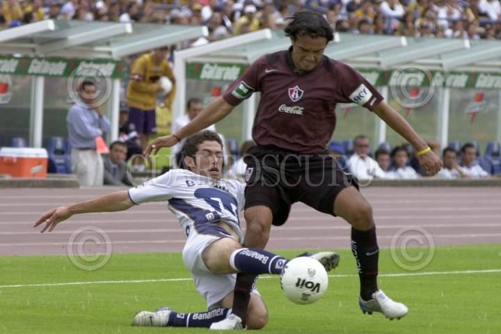 MEXICO, D.F. 06MARZO2005.- Diego Alonso festejó el tercer gol anotado por su equipo en el juego donde los pumas de la UNAM vencieron 3 goles a 2 a Atlas en el partido de la jornada 8 del torneo de clausura 2005 disputado en el estadio de Ciudad Universitaria. FOTO: Iván Stephens/CUARTOSCURO.COM