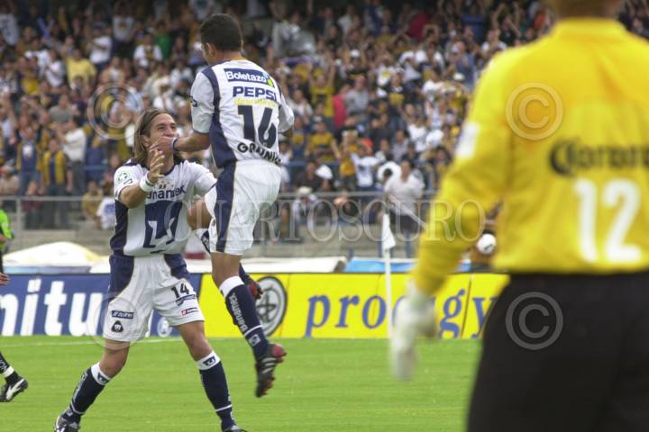 MEXICO, D.F. 06MARZO2005.- Diego Alonso festejó el tercer gol anotado por su equipo en el juego donde los pumas de la UNAM vencieron 3 goles a 2 a Atlas en el partido de la jornada 8 del torneo de clausura 2005 disputado en el estadio de Ciudad Universitaria. FOTO: Iván Stephens/CUARTOSCURO.COM