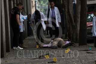 CIUDAD DE MÉXICO, 06MAYO2019.- Tres hombres intentaron agredir al periodista Héctor de Mauelón, en lo que aún la PGJCDMX no a confirmado si fue un asalto o un ataque directo, en la calle de Francisco Márquez casi con avenida Mazatlán, en la colonia Condesa, en los hechos el escolta del comunicador repelió la agresión matando a uno e hiriendo a otro, mientras que otro huyó, en el lugar quedaron al menos siete cartuchos percutidos y una pistola. FOTO: MOISÉS PABLO /CUARTOSCURO.COM