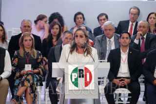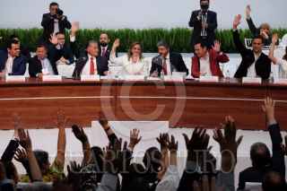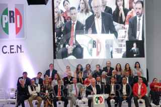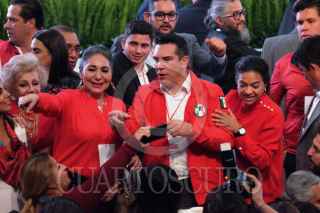 CIUDAD DE MÉXICO, 06MAYO2019.- Alejandro Moreno Cárdenas convive con sus compañeros del partido del Partido de la Revolución Institucional (PRI) al termino de la XLV Sesión Extraordinaria del PRI, en materia de la aprobación del Instituto Nacional Electoral (INE) del proceso de la nueva dirigencia nacional, la cual se llevo a cabo en el auditorio “Plutarco Elías Calles” de su sede nacional. FOTO: GRACIELA LÓPEZ /CUARTOSCURO.COM