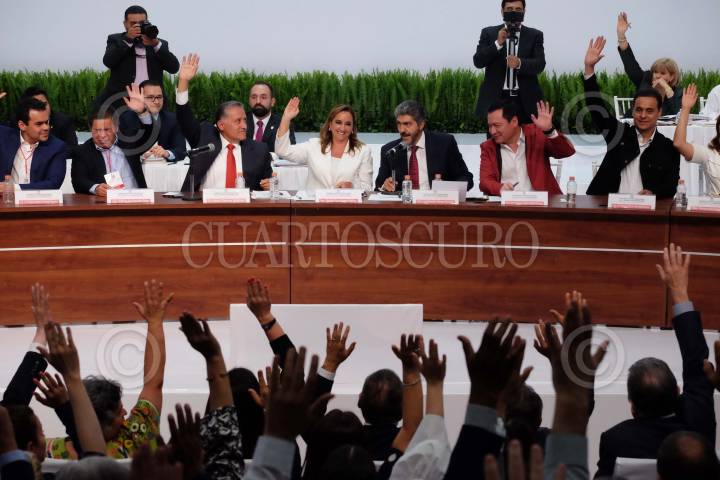 CIUDAD DE MÉXICO, 06MAYO2019.- Alejandro Moreno Cárdenas convive con sus compañeros del partido del Partido de la Revolución Institucional (PRI) al termino de la XLV Sesión Extraordinaria del PRI, en materia de la aprobación del Instituto Nacional Electoral (INE) del proceso de la nueva dirigencia nacional, la cual se llevo a cabo en el auditorio “Plutarco Elías Calles” de su sede nacional. FOTO: GRACIELA LÓPEZ /CUARTOSCURO.COM