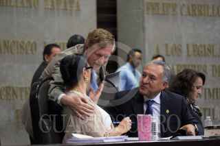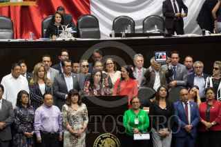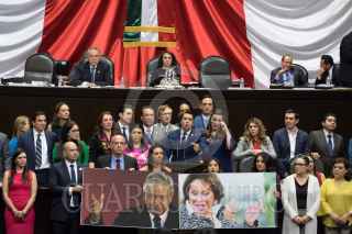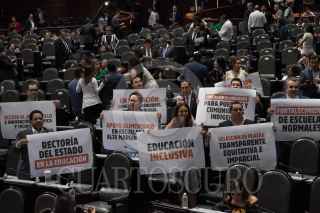 CIUDAD DE MÉXICO, 08MAYO2019.- Integrantes del partido de Movimiento Ciudadano protestaron con pancartas para posicionarse en contra de la aprobación de la Reforma Educativa en la Segunda parte de la Sesión Extraordinaria en la Cámara de Diputados. FOTO: GRACIELA LÓPEZ /CUARTOSCURO.COM